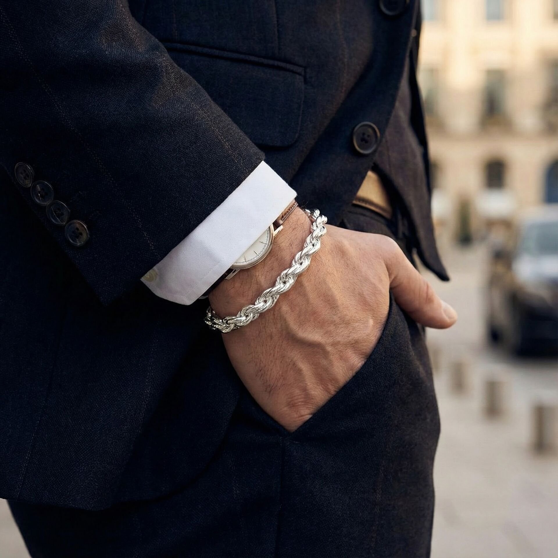 GÜMÜŞ ÖRME KALEMLİ ERKEK KELEPÇE